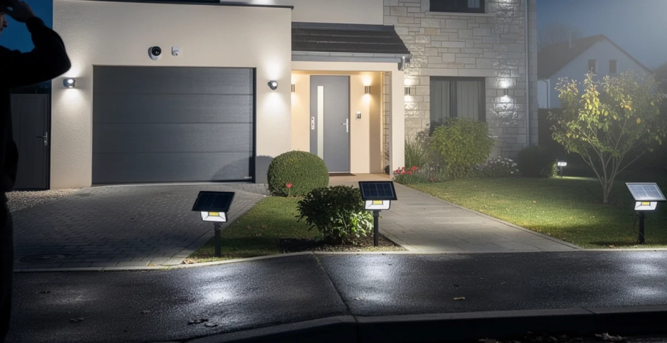 Concrètement, on placera des appliques murales LED ou des projecteurs compacts au-dessus des portes et le long des façades, à intervalles réguliers. Pour les accès secondaires souvent ciblés par les cambrioleurs (porte arrière, porte de garage, entrée de cave), un éclairage plus franc et dirigé est recommandé, afin de supprimer les zones d’ombre à proximité immédiate des serrures et des poignées. Vous pouvez imaginer cela comme un rideau de lumière entourant votre maison : franchir ce rideau devient un acte visible, assumé, donc plus risqué pour un intrus.