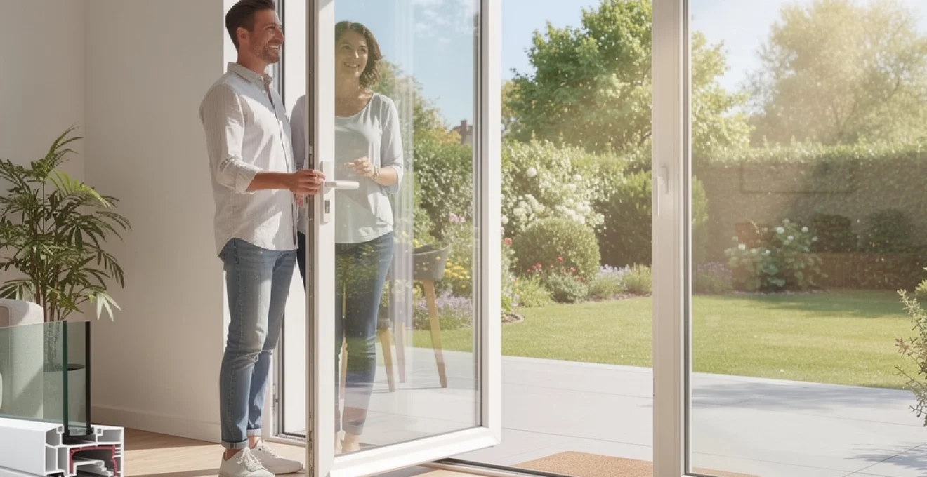 L’avantage pour vous est double : vous bénéficiez d’un excellent coefficient thermique Uw tout en conservant une menuiserie visuellement légère, qui laisse la part belle au vitrage. Sur une porte-fenêtre PVC moderne, la proportion de surface vitrée peut ainsi dépasser 80% de la surface totale du cadre. Par rapport à d’anciens modèles aux montants épais, le gain de luminosité est immédiat, sans sacrifier ni la stabilité, ni la durabilité.